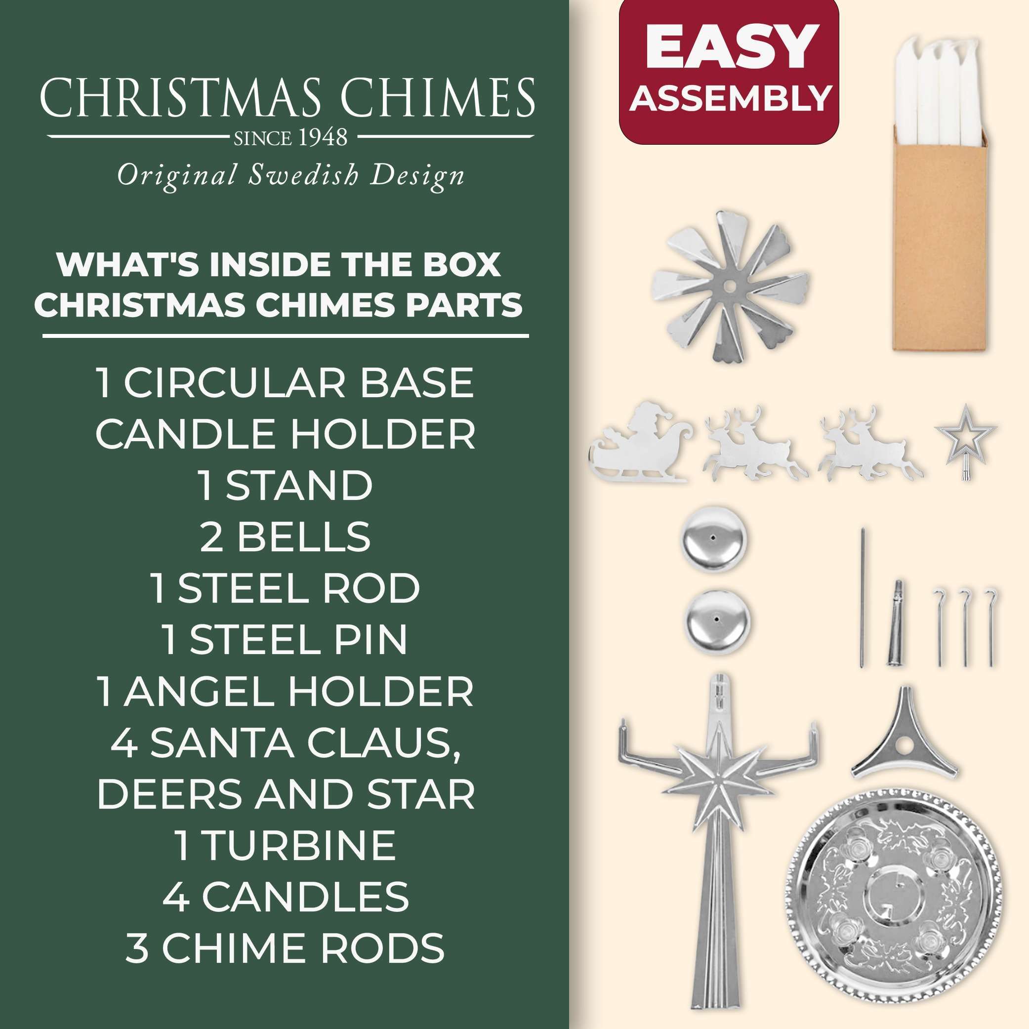 • Rotating Christmas-themed figures (stars, bells, trees, snowflakes) powered by candle heat